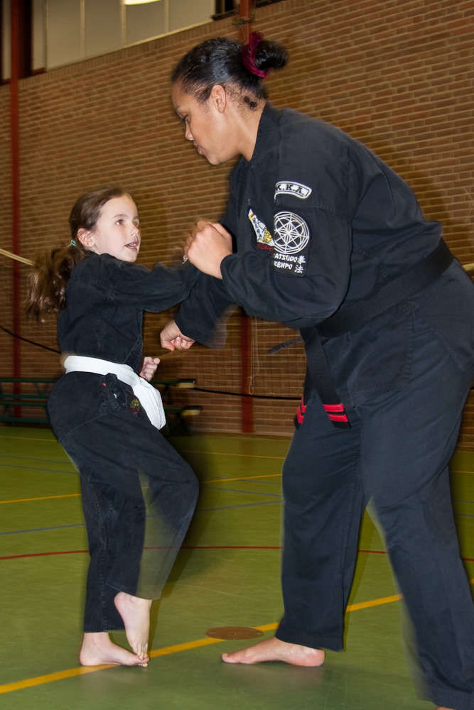 Vervolgens was het tijd voor een uurtje Kenpo. We deden een reactiedrill met Deflecting Hammer en Thrusting Salute.
